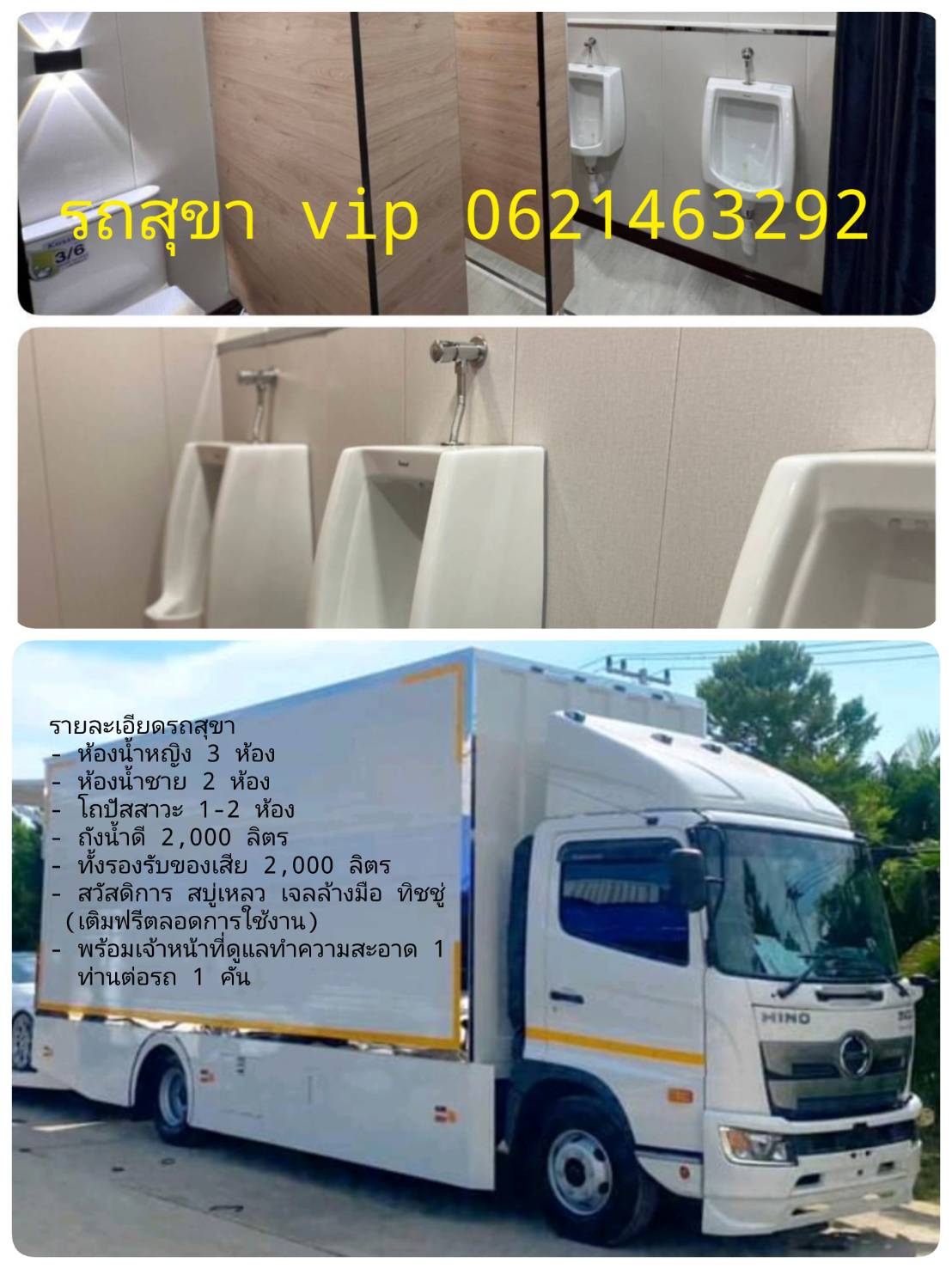 - รถสุขาเป็นรถระดับVip บรรจุน้ำ 1500-2500 ลิตร ขึ้นอยู่กับขนาดรถที่ผู้ใช้บริการเลือกใช้ ถังเก็บของเสีย 1500-2500 ลิตร เเอร์ 12000 BTU 2-4 ตัว ใช้กระเเสไฟฟ้าของทางลูกค้า หม้อ 15 แอมย์ 3 เฟท ทางรถบริการเรา มีสายต่อพ่วงไฟฟ้า 30 เมตร มี โถปัสสวะชาย 2-4 โถ ห้องน้ำหญิง 2-4 ห้อง ห้องน้ำชาย 2-4 ห้อง ก๊อกน้ำล้างมือ 2-4 ก๊อกพร้อมสุขภัณฑ์ล้างมือ ใช้งาน 8 ชม.ต่อ 1 ดิว